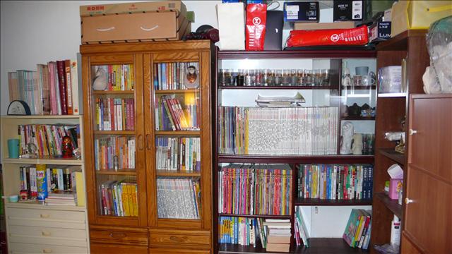 然後樓梯間的成排書櫃全部把不要的書丟掉