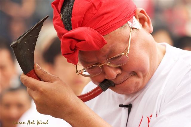 反方向的快步跑過正準備由主祭者要首先要走的木炭道