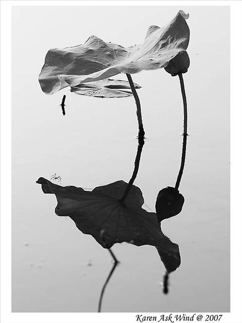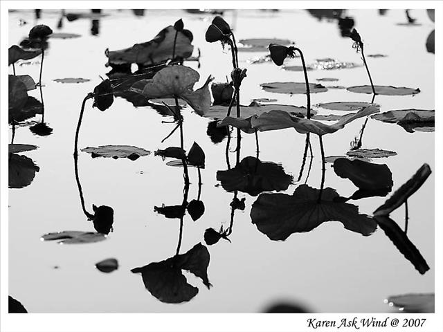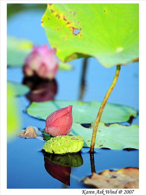 這二池的荷離我們的站立點很近 池面不密 可以輕易的利用倒影