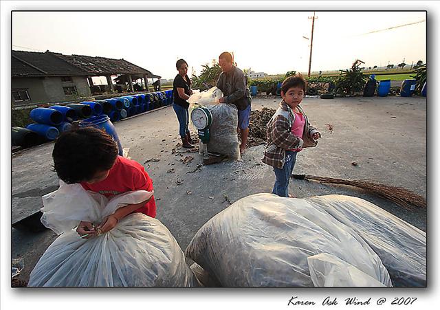 但他們三個小朋友很乖的在幫爸媽收酸菜