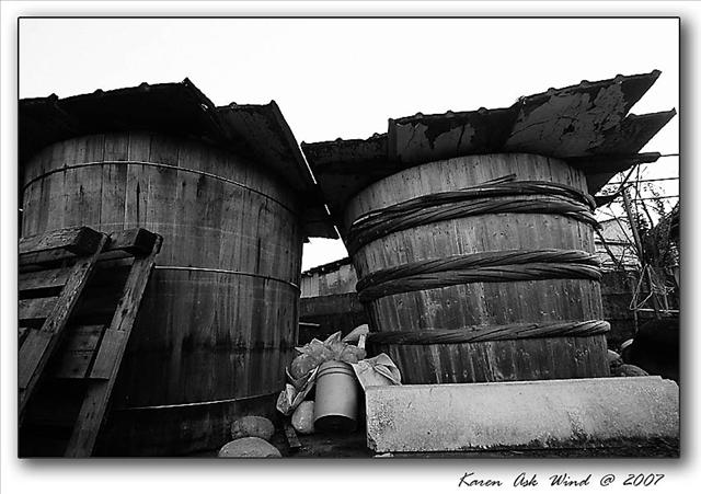 他看我們那麼有興趣 還帶我們到另一個羅阿姨家去看一個僅剩木桶製的酸菜桶