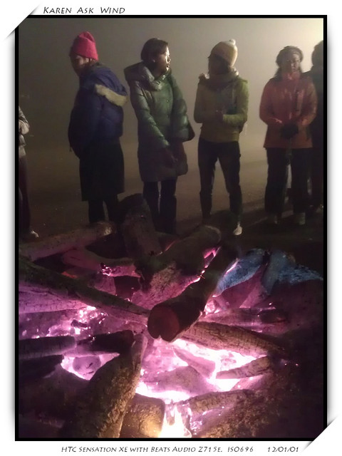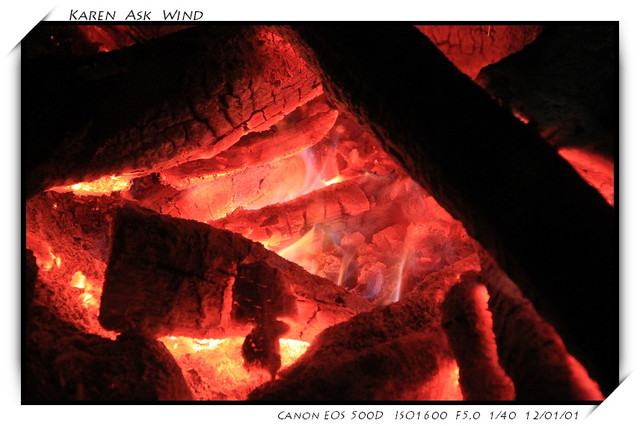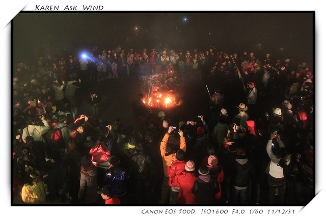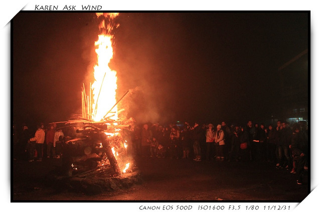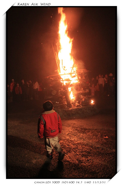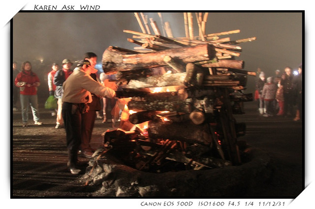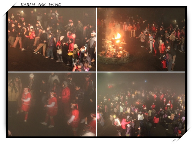 一直到九點半 原住民就點燃了火堆