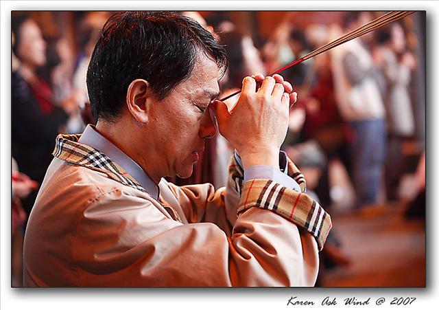 (這位先生專心的與菩薩對話,他的動作讓我感受到他的誠心)