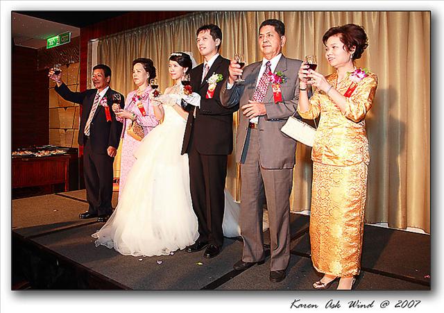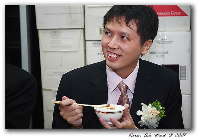 我還是乖乖的吃喜酒 偶爾擺個YA的動作讓攝影師拍(像吃西大的喜酒一樣)