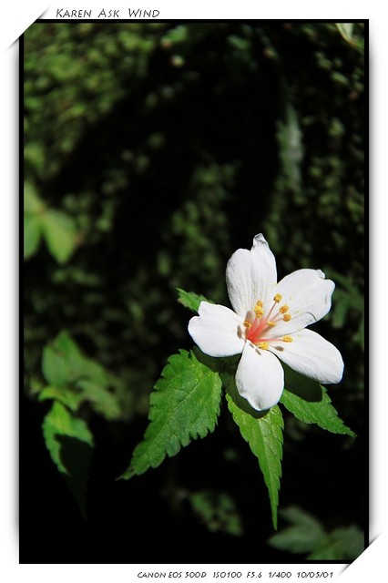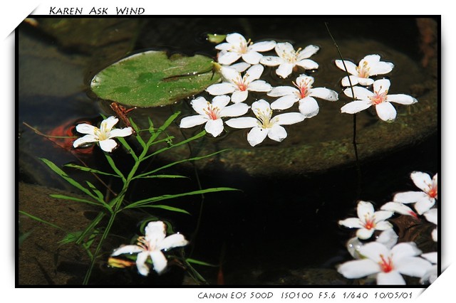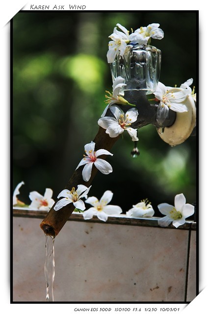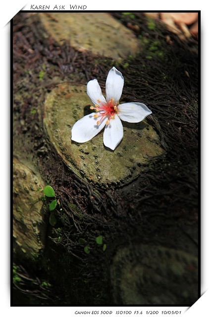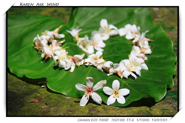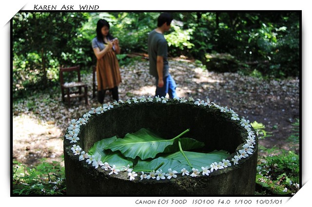 (這也很過份,把桐花排成一大圈,中間為什麼有菇婆芋葉呢?因為那下面是一堆垃圾,用葉子遮起來就不會難看了)