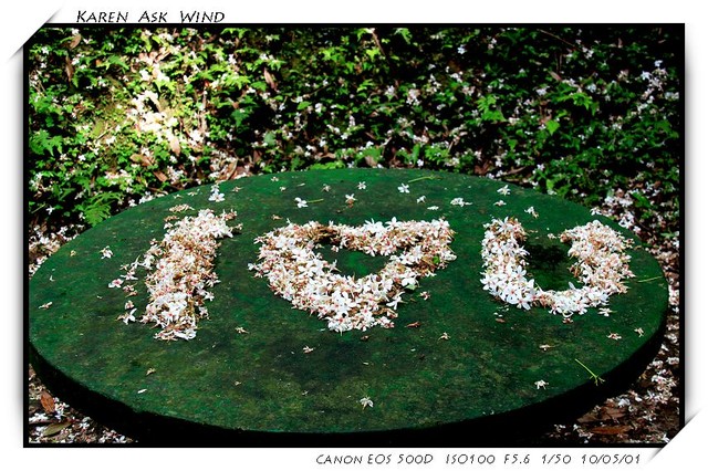 (MEI很無奈的應我要求幫忙拍的,那以桐花排的楚河漢界,MEI覺得我幼稚極了...哈!)