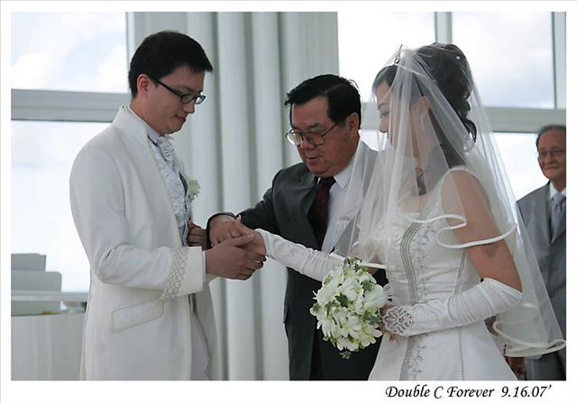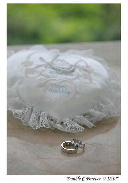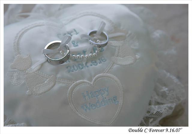 【這婚戒座是老妹找人做的,上面有綉有Carl和Christine的名字,與他們結婚的日期】