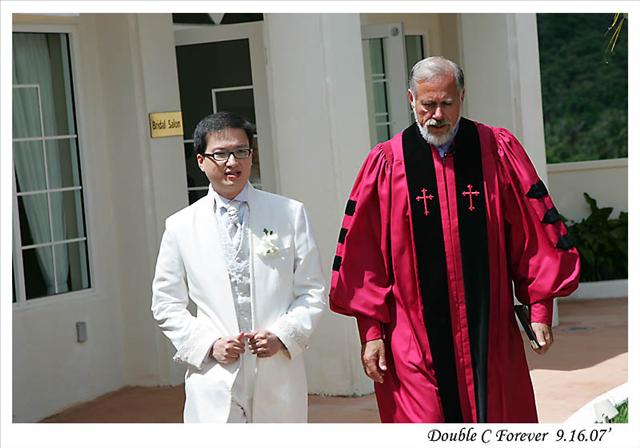 【雙方親友先行進入教堂中,品諺的表情好像一幅準備要去打架的臭臉】