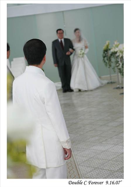 【老爸牽著老妹步入教堂,這時就有鋼琴及一個聲音美到感動要掉淚的女聲演唱】