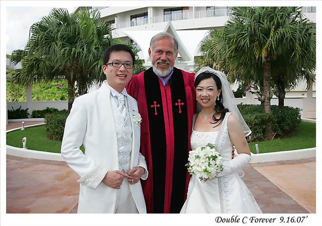 【新人與牧師合影】(牧師那麼大年紀還帶牙套,挺可愛的)