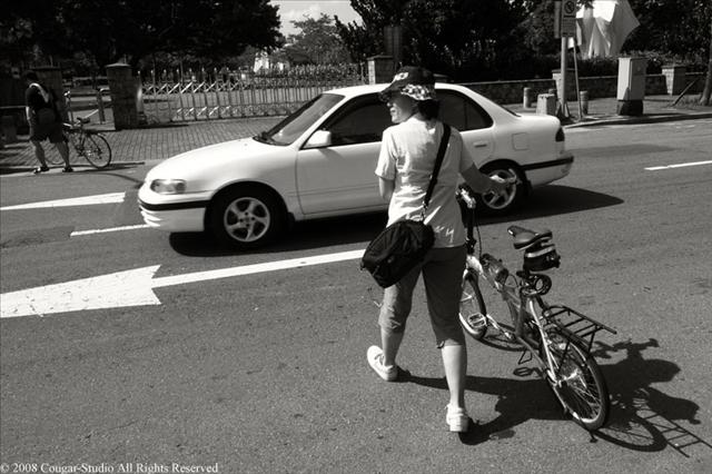 而世青因為探路騎在前頭(因為他也不確定這專用道能不能騎過去)