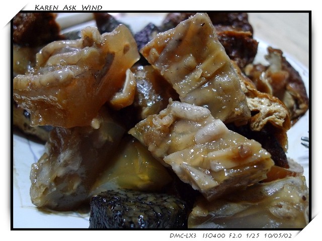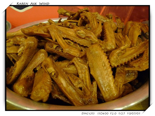 他們把銷路最好的幾個滷味用盆裝著讓客人好夾取