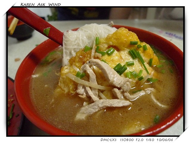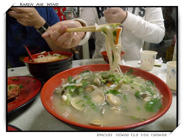 <老酒麵線/90元>(這個麵我們一致給予滿分評價,那湯頭真的太讚了!我們只叫一份三個人分食,因為建華不喝酒,連酒做料理都不行,可惜啊)