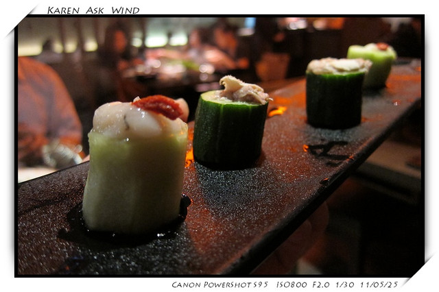 <單品之二:海陸鮮瓜封。一種是小黃瓜塞豬肉漿,另一種是澎湖絲瓜塞蝦漿>