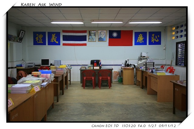 (簡單,但整潔,還有國旗和蔣公遺照)